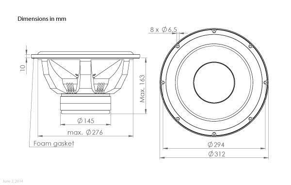 After burn-in specifications are measured 12 hours after exciting the transducer by a 20 Hz sine wave for 2 hours at level 10/14.1 VRMS (4/8 ohm version). The unit is not burned in before shipping.