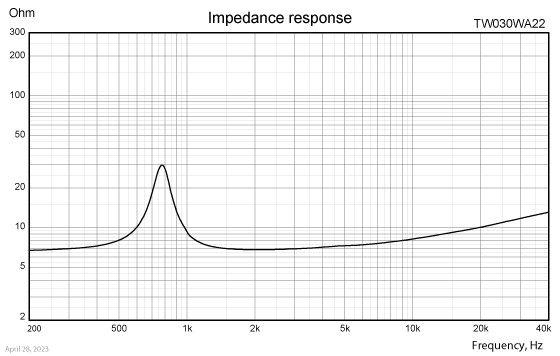 Important! Please observe that these text files for download are actual measurements of the drivers measured in infinite baffle and without any enclosure. Measuring the drivers in a finite baffle (like the baffle of most speaker cabinets) and in any size of enclosure will lead to different response curves.